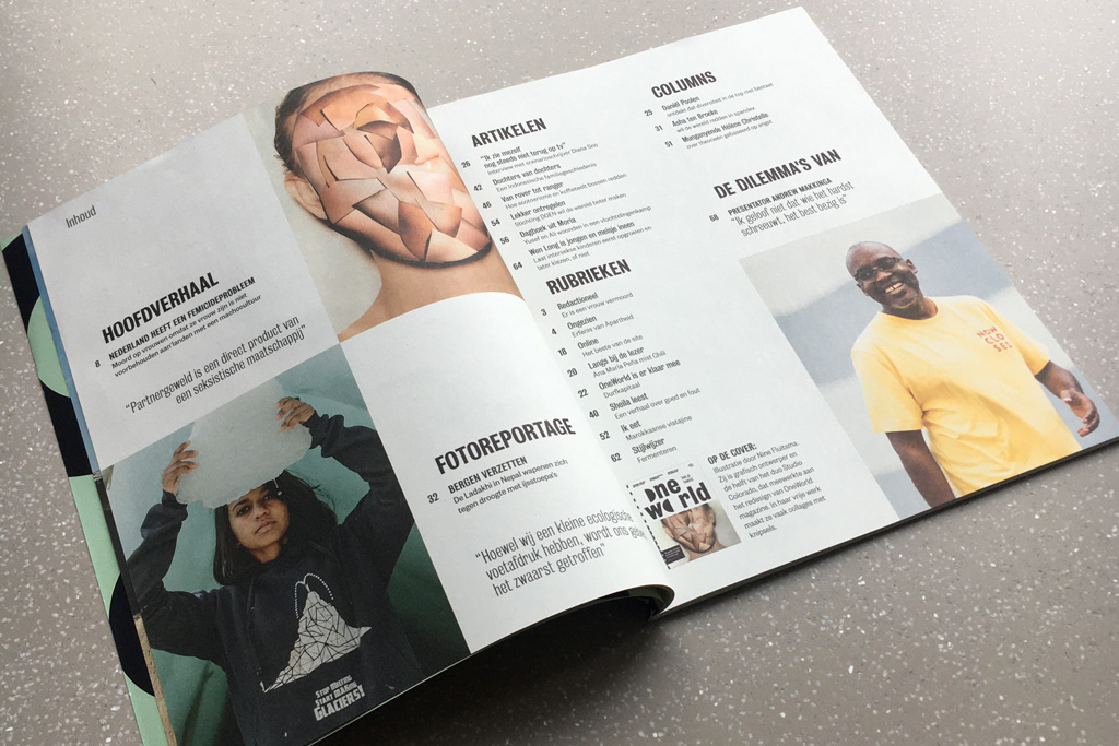 I worked as art-director and graphic designer at OneWorld for over ten years, overseeing several redesigns and more than 100 issues. The latest redesign included a complete overhaul of the visual identity. I brought in the great Studio Colorado for a fresh approach.