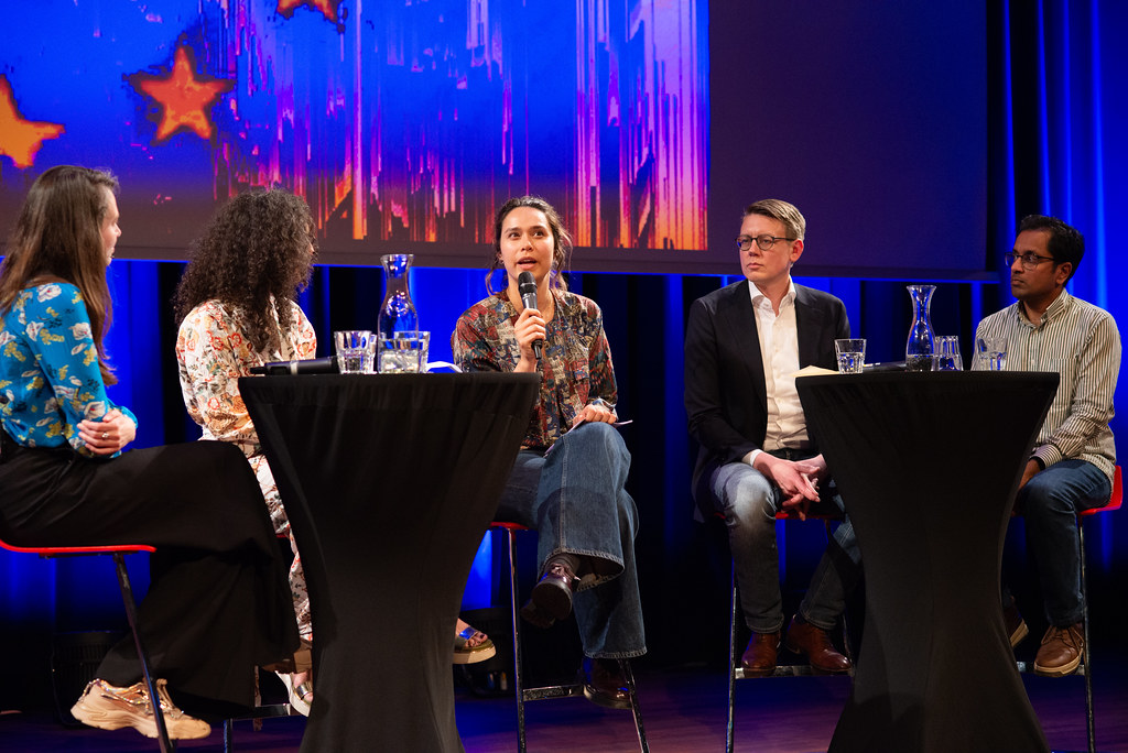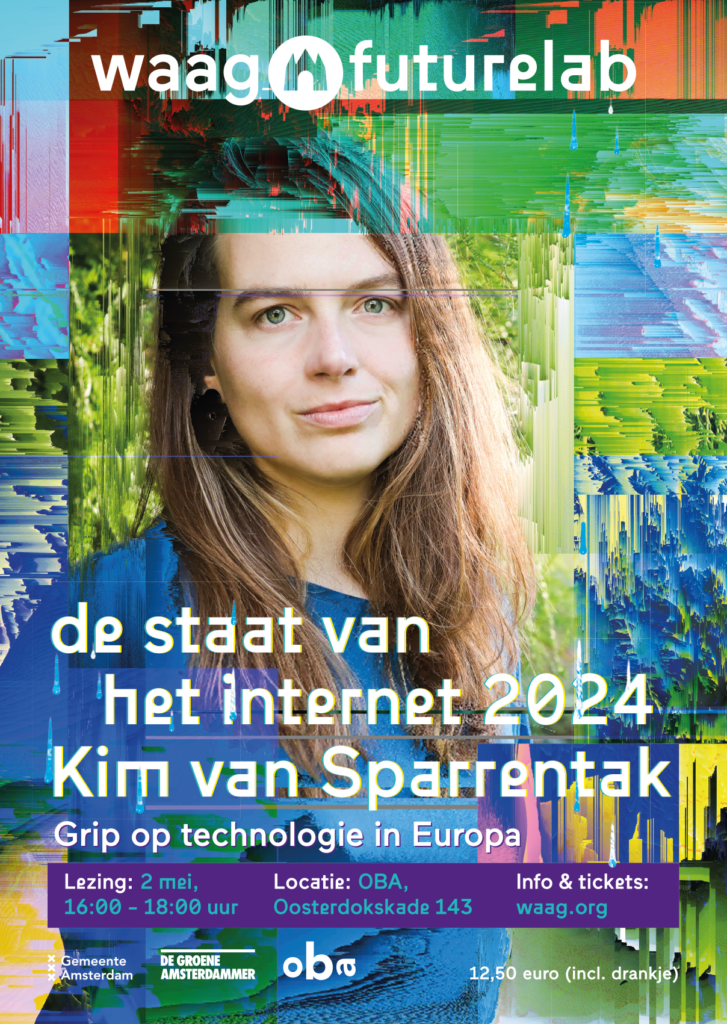 This year, European parliamentarian Kim van Sparrentak led the lecture. Among other things, she was involved in the AI Act, the initiative proposal on ‘addictive design of online services’, and advocates reducing the power of Big Tech by developing laws and regulations. Also participating in the panel discussion were Naomi Appelman (chair of Racism and Technology Center), Sander van der Waal (Research Director Waag Futurelab), Ilyaz Nasrullah (podcast creator and tech columnist for Trouw).