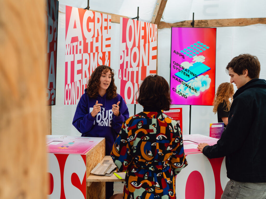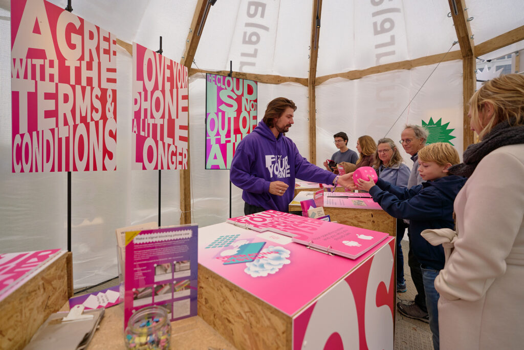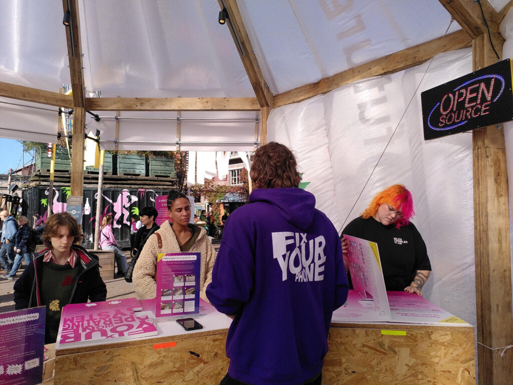 Visitors of the Dutch Design Week 2024 could learn what to do to fix their phones at the Fix Your Phone Shop. Extensive guidelines and open source alternatives to common apps and services were provided.