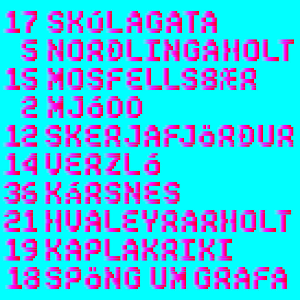 The mono-spaced capital font I made for this project turned into a pet project that I developed a bit further to include the letters of the Icelandic alphabet. The quirky vertical scaling of the accented letters reminded me of typography I saw on Icelandic public busses.